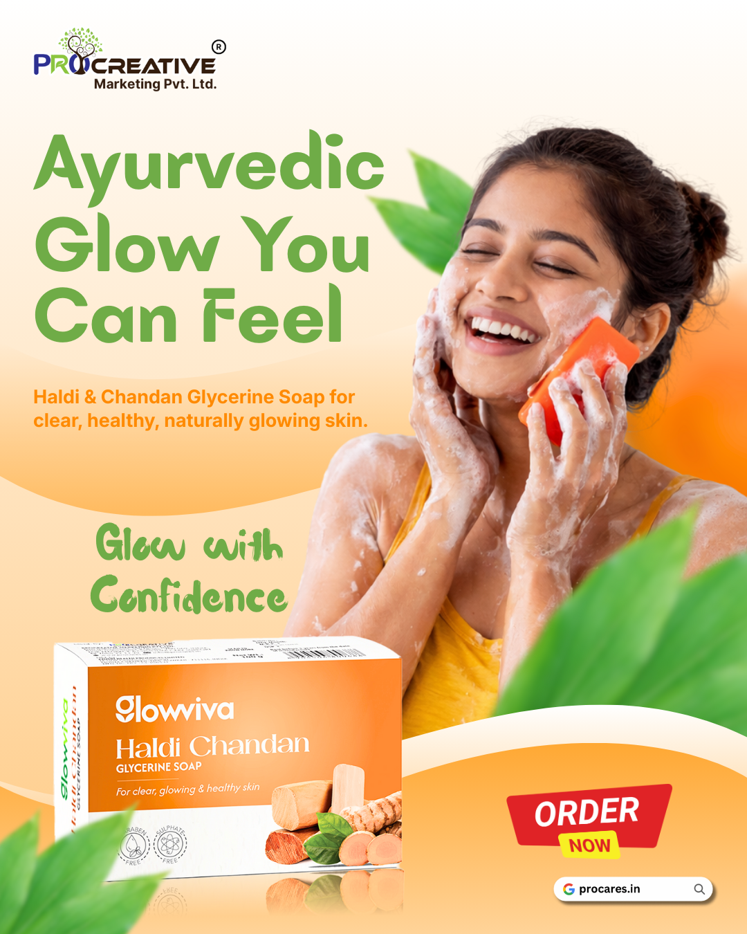 Glowiva Haldi Chandan Glycerine Soap is an Ayurvedic-inspired bathing soap designed to cleanse the skin gently while supporting a natural glow. Enriched with the goodness of Haldi (Turmeric), Chandan (Sandalwood), and Glycerine, it helps maintain skin hydration, improve skin clarity, and promote a fresh, healthy-looking complexion. Suitable for daily use, the soap cleanses without stripping away natural moisture, leaving the skin soft, smooth, and refreshed.