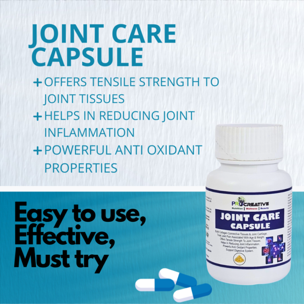 जोड़ों के दर्द से राहत: कई जॉइंट केयर कैप्सूल में ग्लूकोसामाइन, कॉन्ड्रॉइटिन सल्फेट और MSM (मेथिलसल्फोनाइलमीथेन) जैसे तत्व होते हैं, जो जोड़ों के दर्द और सूजन को कम करने में सहायक माने जाते हैं।